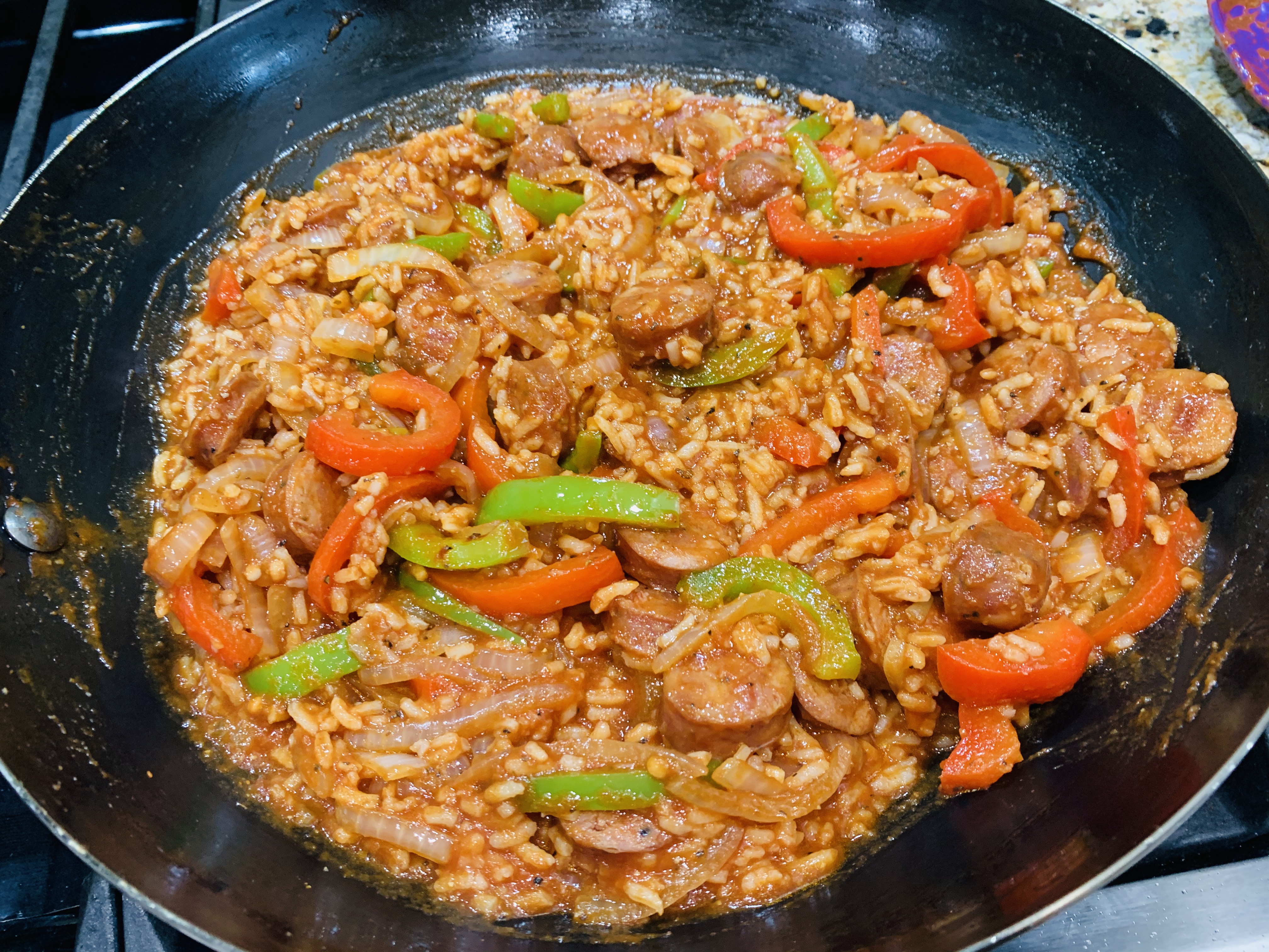 Feeling like taking a trip to the Bayou & Louisiana tonight. Skillet Cajun Sausage Peppers & Rice is what’s for dinner tonight. Listening to some Hank Williams Sr while cookin’