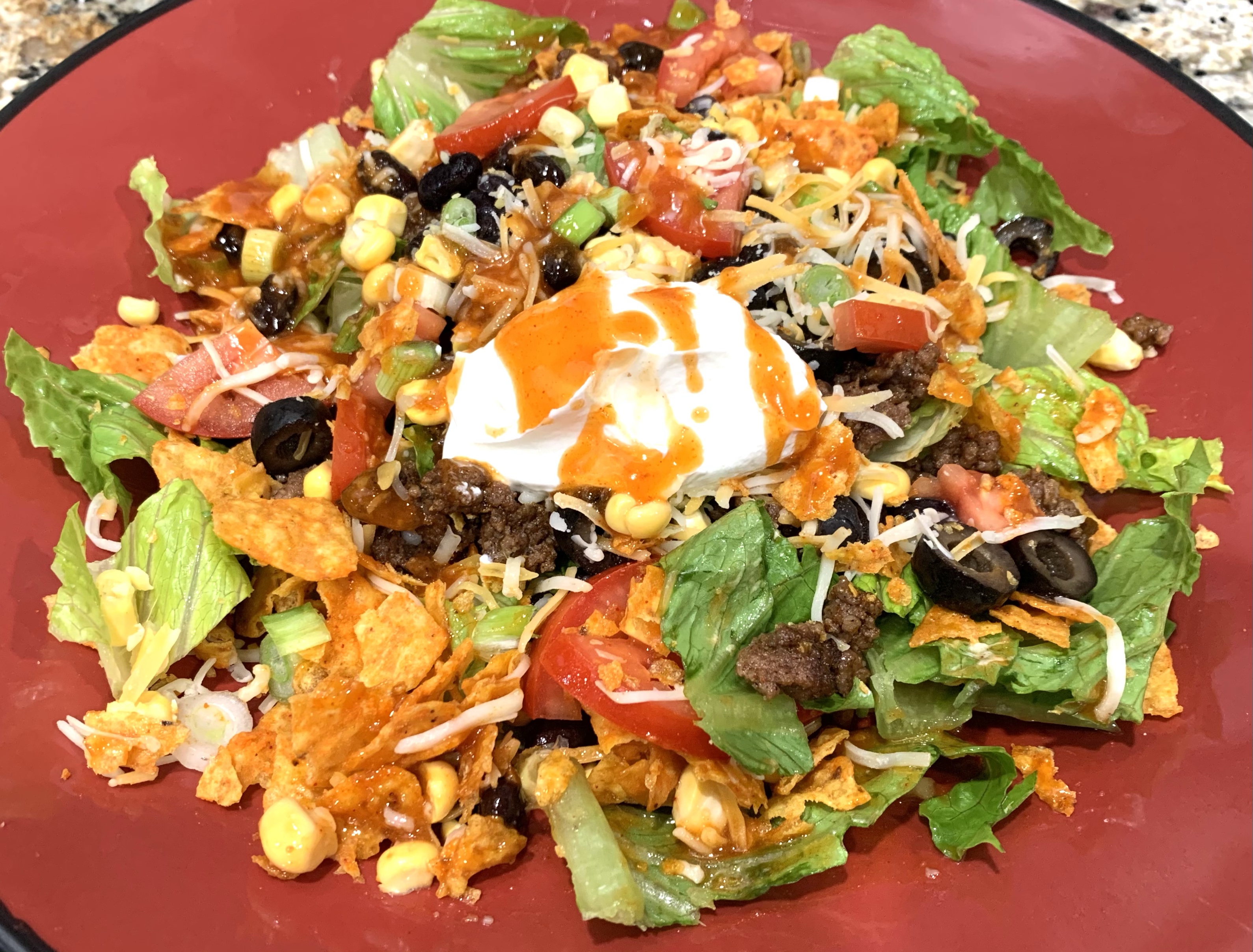 I love retro recipes and this one is definitely one of my favorite blasts from the past! If you’re a child of the 80’s, then you’ve probably enjoyed this Doritos Taco Salad at a potluck or family gathering. It’s an easy dinner recipe and a crowd-pleasing party food that will have them begging for the recipe. The secret for mine is in the homemade Catalina dressing.