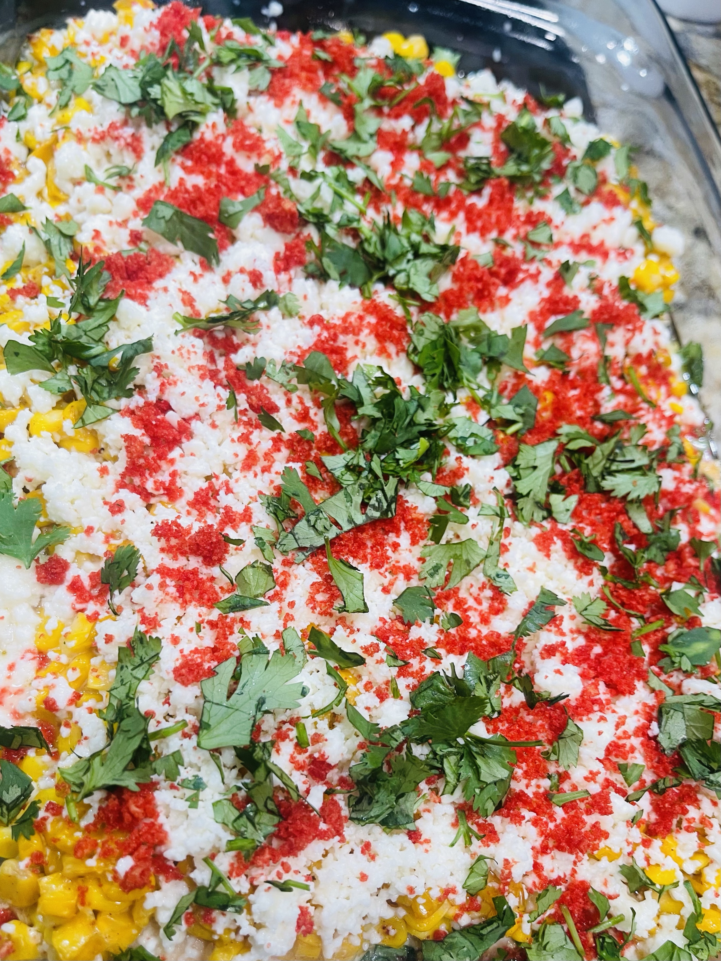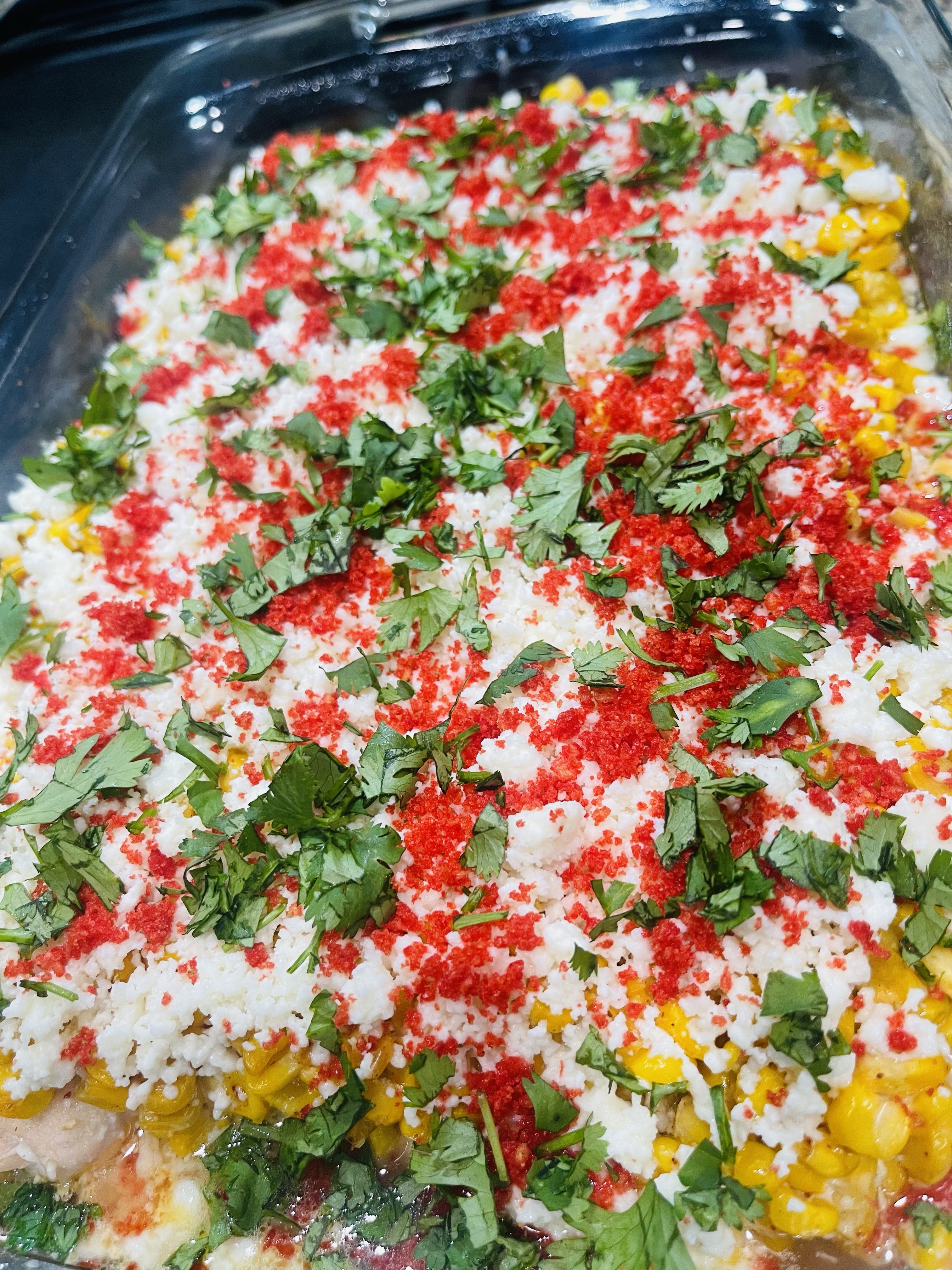 We call this Mexican Corn Elote, but it should just be known as the best corn EVER! The sweetness of the corn, salty cheese, creamy mayonnaise, smoky chile, spicy hot sauce and burst of lime come together in one incredible combination. So I figured there was no way I could go wrong with this dish, and I was not wrong the whole family devoted and loved it! The Hot Cheetos Topping was my daughter’s idea since that’s her favorite topping on her Elote. I’m not a fan of Hot Cheetos but they do work with this dish.