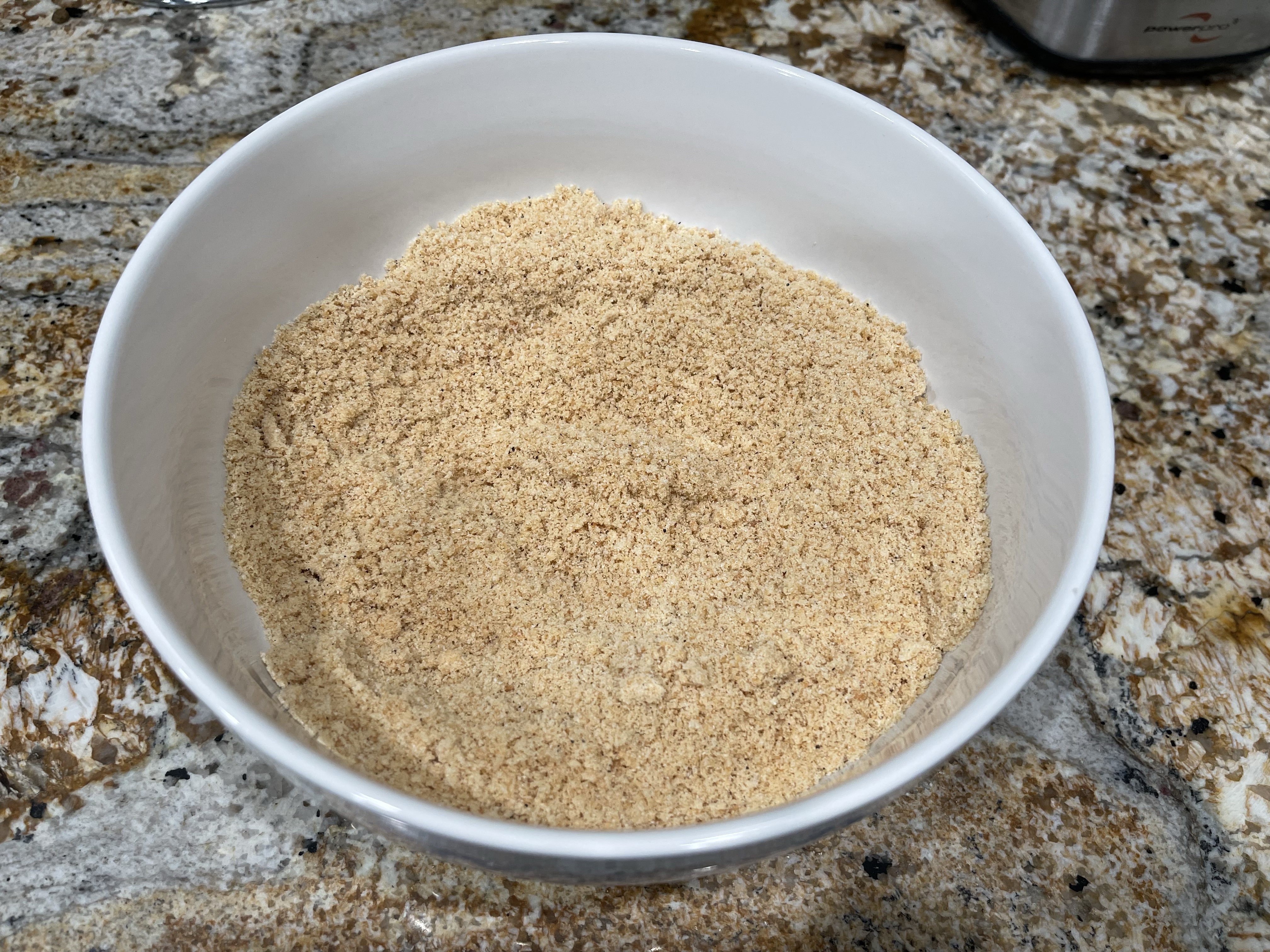 Combine the pork rinds, coconut flour, and black pepper in a blender or food processor and pulse until it has made a fine powder. Shake this mix out into a medium bowl.