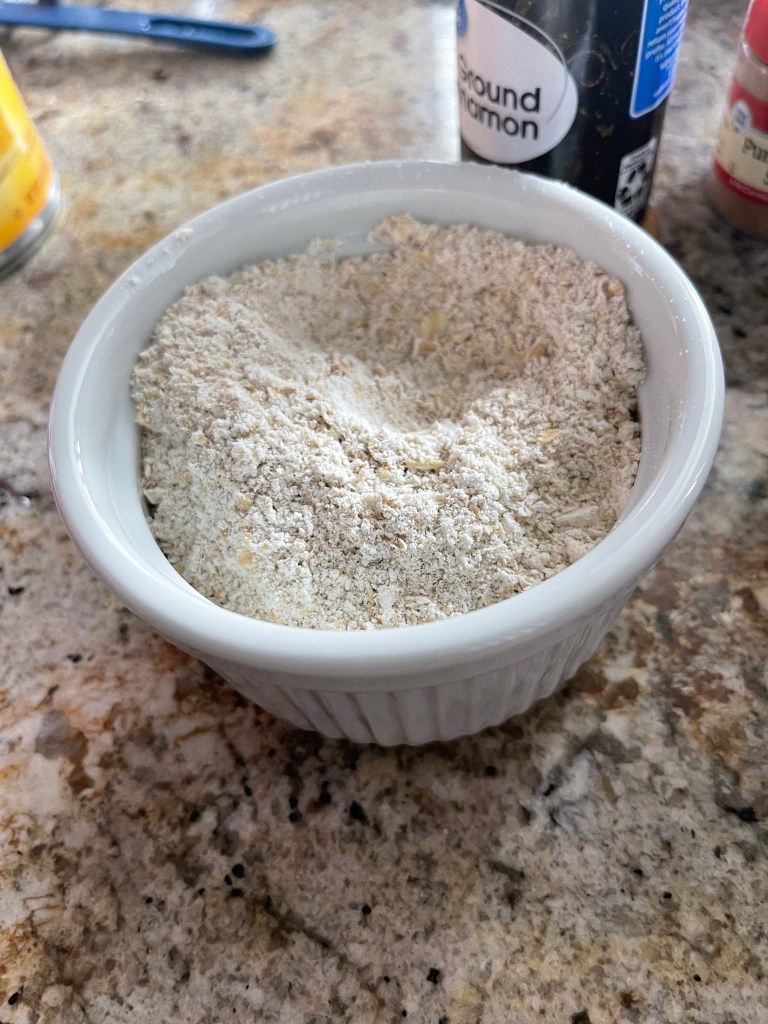 2. Add in oats, chia seeds, cinnamon, and pumpkin pie spice. Stir well.