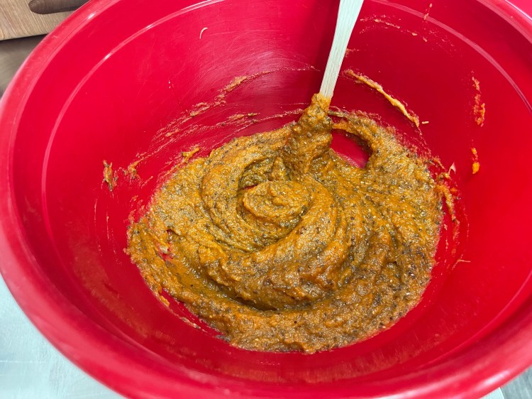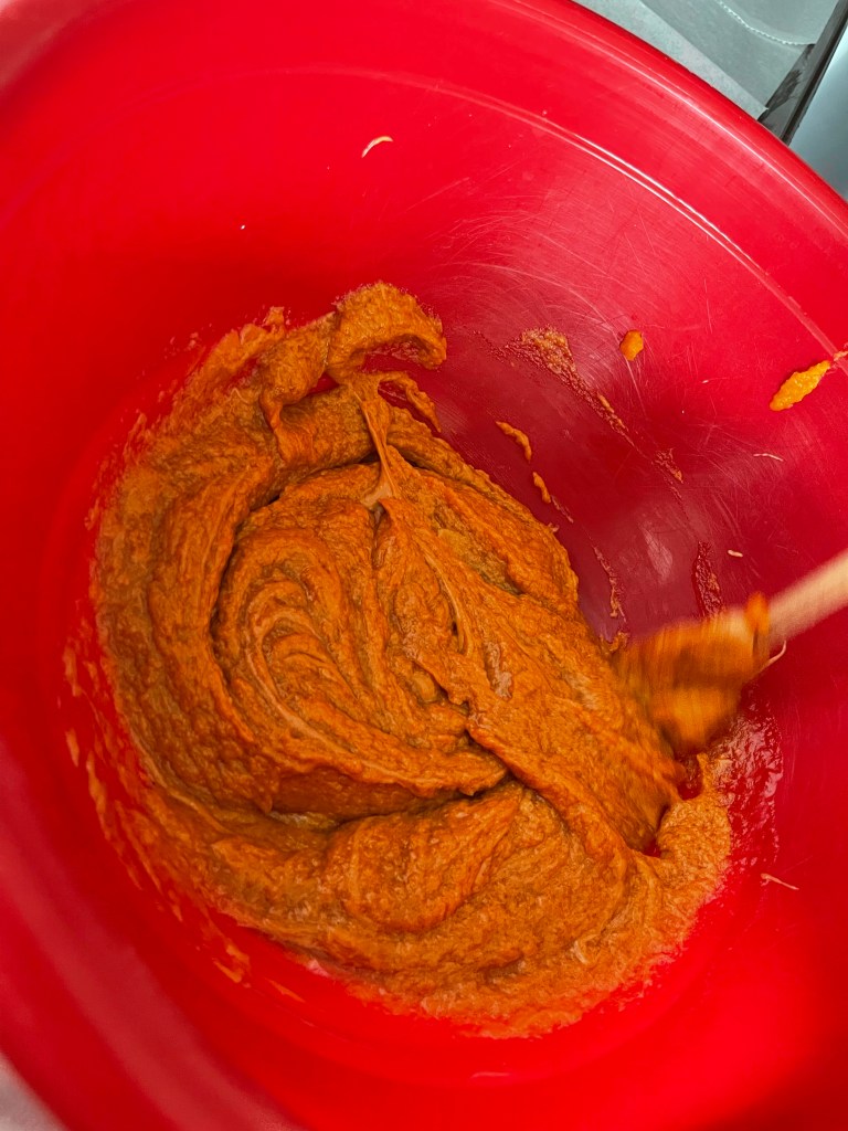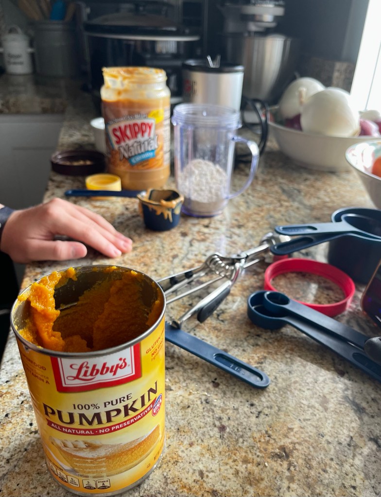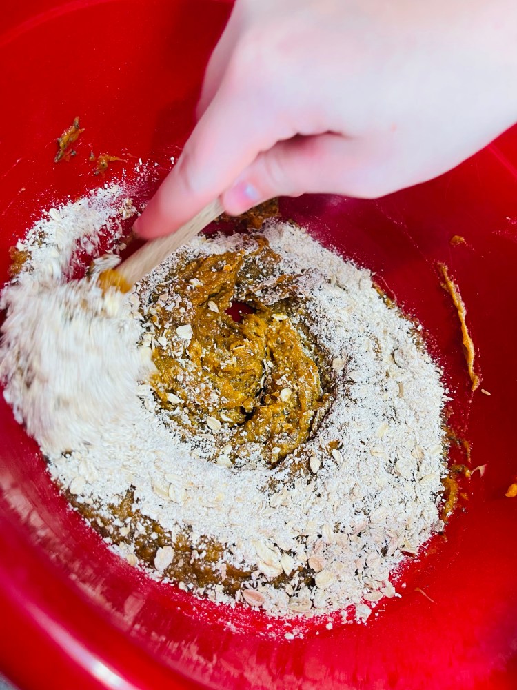 1. In a large bowl, combine the pumpkin, honey, and peanut butter.